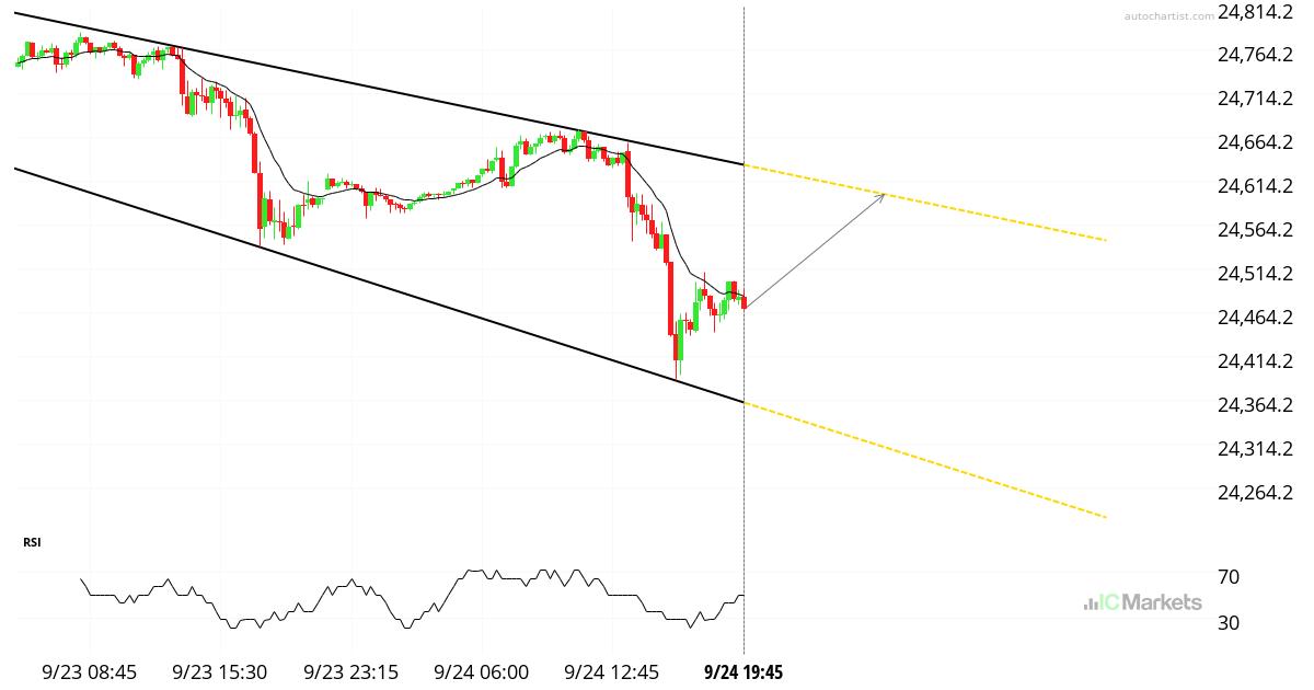 تم تحديد القناة الهابطة في 9/24 19:45. لا يزال هذا النمط قيد التشكّل. توقعات بحركة سعرية صعودية محتملة نحو مستوى المقاومة 24,600.2 خلال الـ 9 ساعات القادمة. تحذير من المخاطر: ينطوي التداول في الأوراق المالية على مخاطر كبيرة. قد تتقلب الأسعار وقد تفقد الأوراق المالية قيمتها بالكامل. قد تتجاوز الخسائر قيمة الودائع. هذه المنتجات معقدة […]