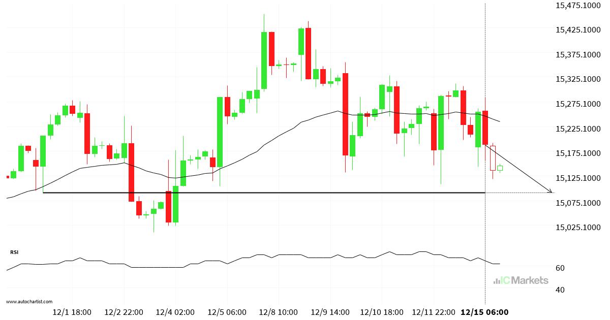 CHINA50 is about to retest a key horizontal support level near 15091.0000. It has tested this level 3 times recently and may simply bounce off it, as it did last time. However, after so many attempts, it may be ready to start a new trend.